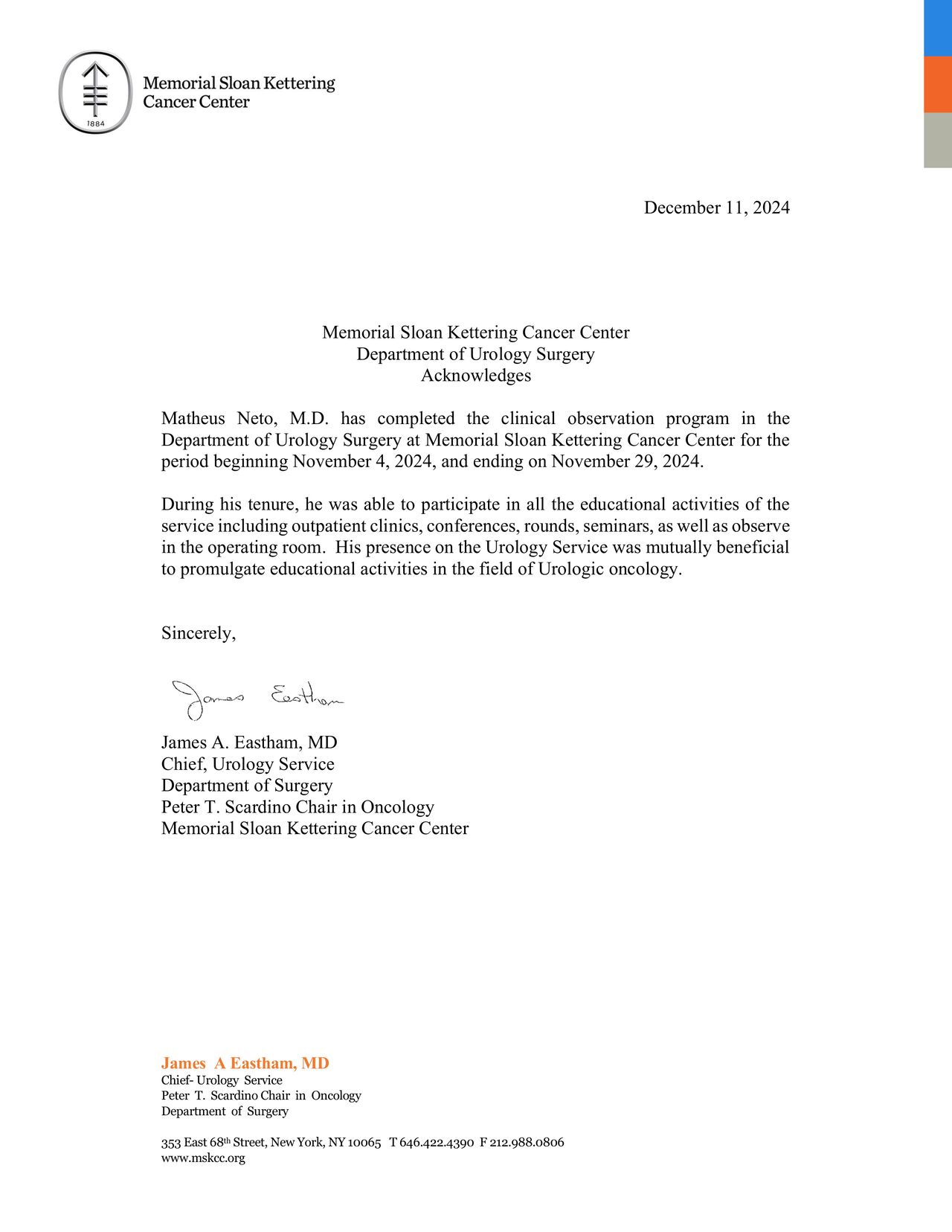 Observership Uro-Oncologia - Memorial Kettering Sloan Cancer Center